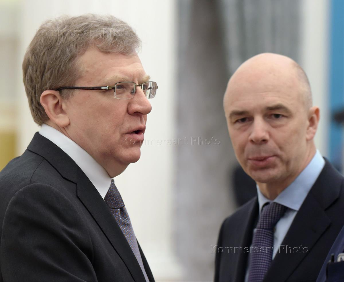 Заседание президиума Совета при президенте России по стратегическому развитию и приоритетным проектам. Председатель Совета Центра стратегических разработок Алексей Кудрин (слева) и министр финансов России Антон Силуанов (справа) перед началом заседания в Кремле.