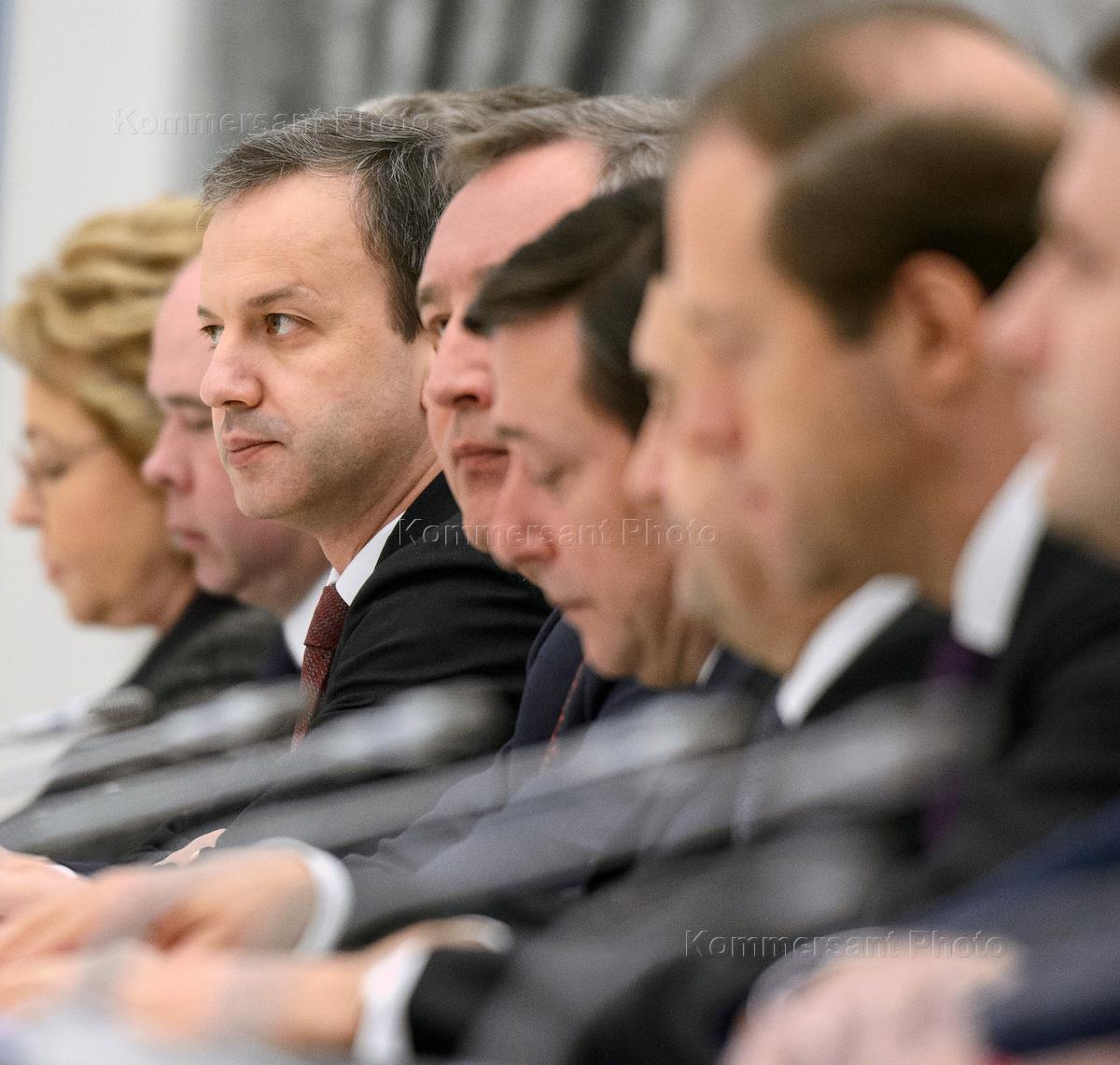 Заседание президиума Совета при президенте России по стратегическому развитию и приоритетным проектам. Заместитель председателя правительства России Аркадий Дворкович (слева) во время заседания в Кремле.