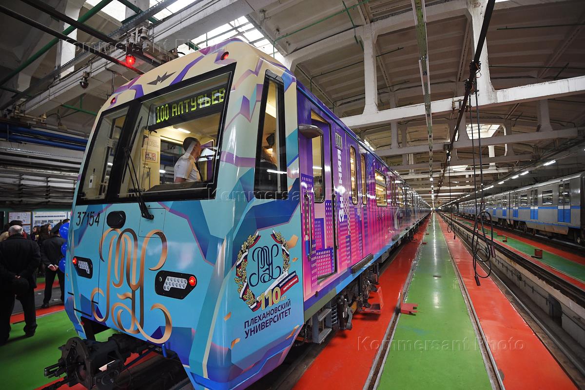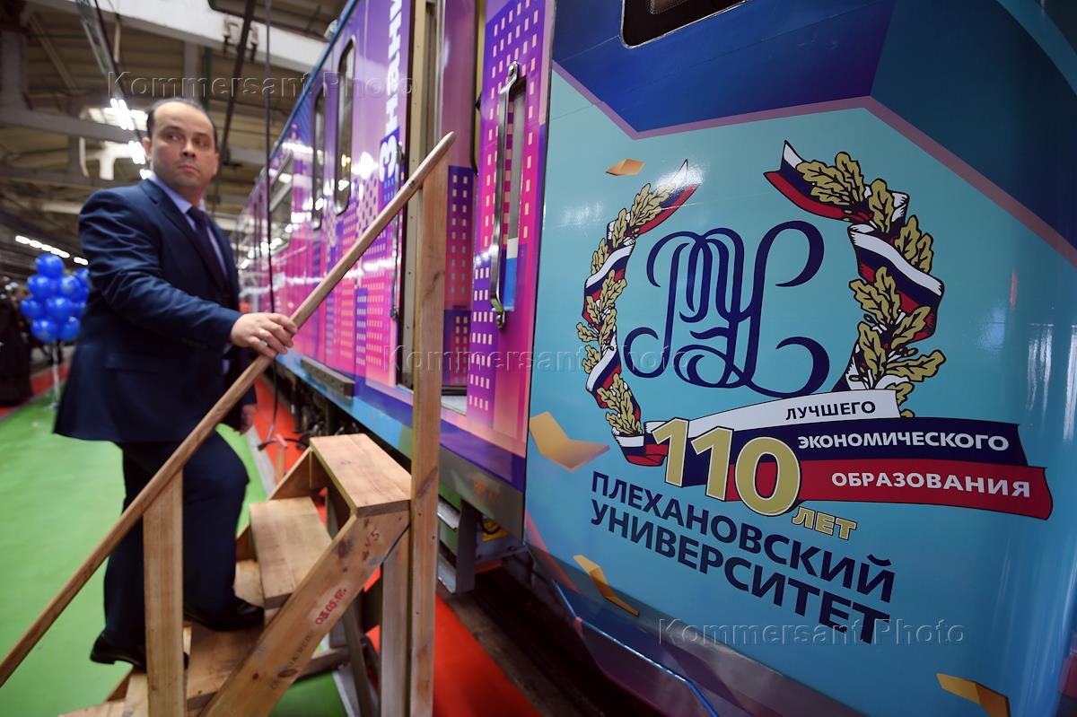 Церемония торжественного запуска именного поезда "Плехановец", посвященного 110-летию Университета имени Плеханова. Церемония прошла в электродепо "Варшавская".