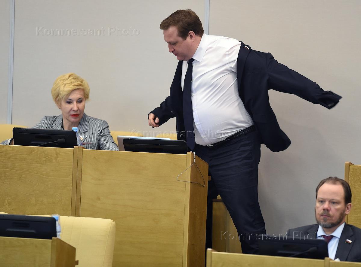 Plenary session of the State Duma of Russia. Alexei Lyashchenko, member of the State Duma Financial Market Committee, during the meeting.