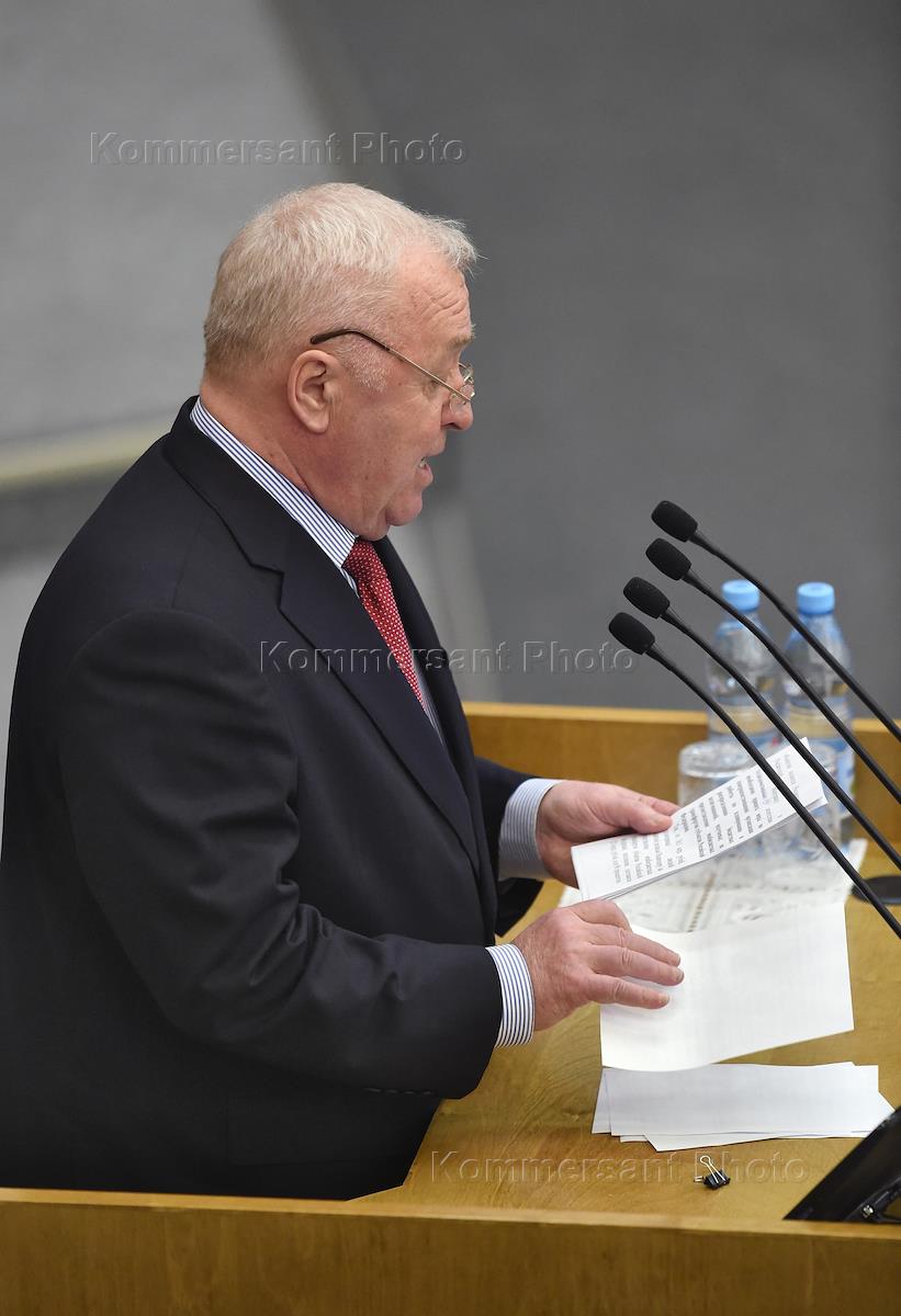 Plenary session of the State Duma of Russia. Alexei Lyashchenko, member of the State Duma Financial Market Committee, during the meeting.
