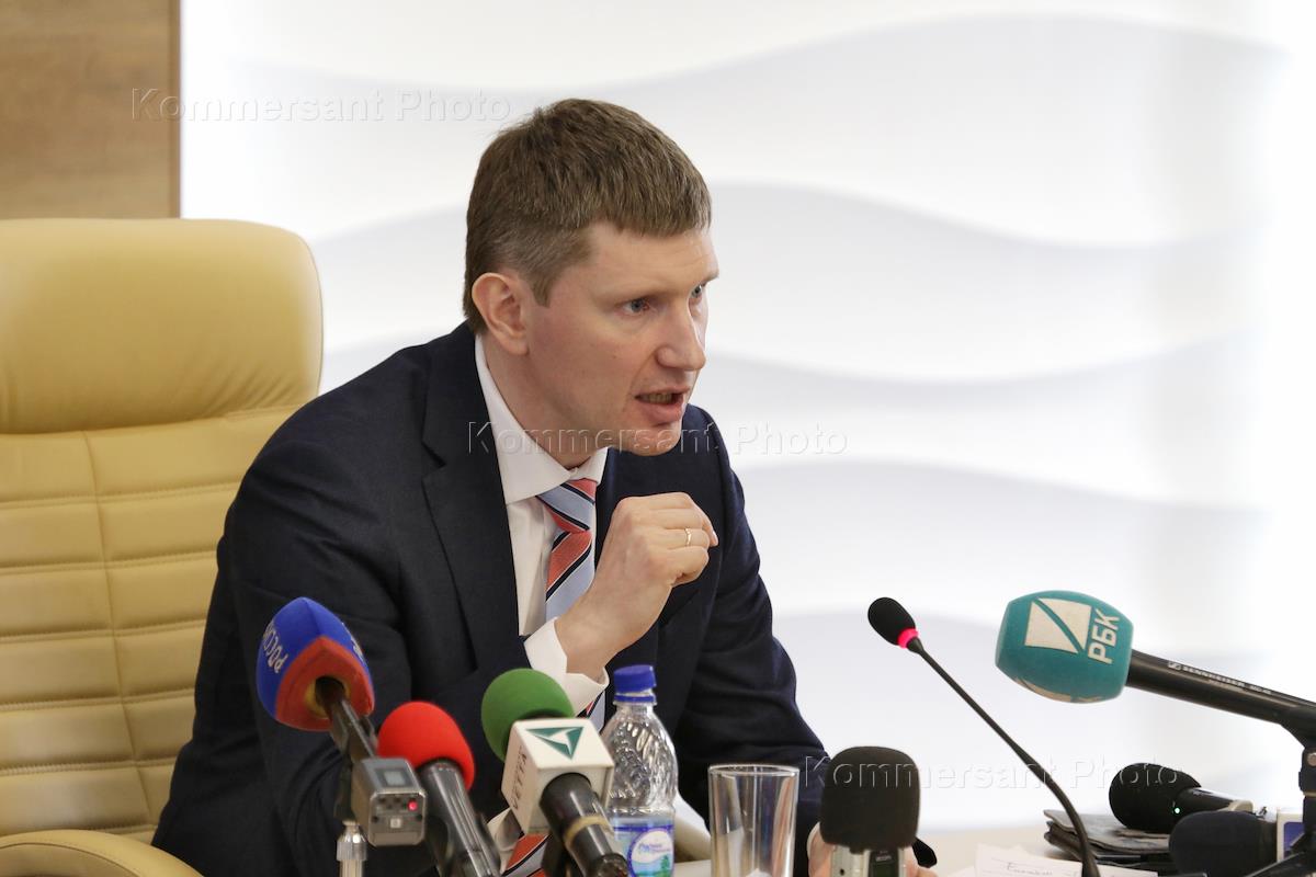 Исполняющий обязанности губернатора Пермского края Максим Решетников во время своей первой встречи с представителями средств массовой информации.