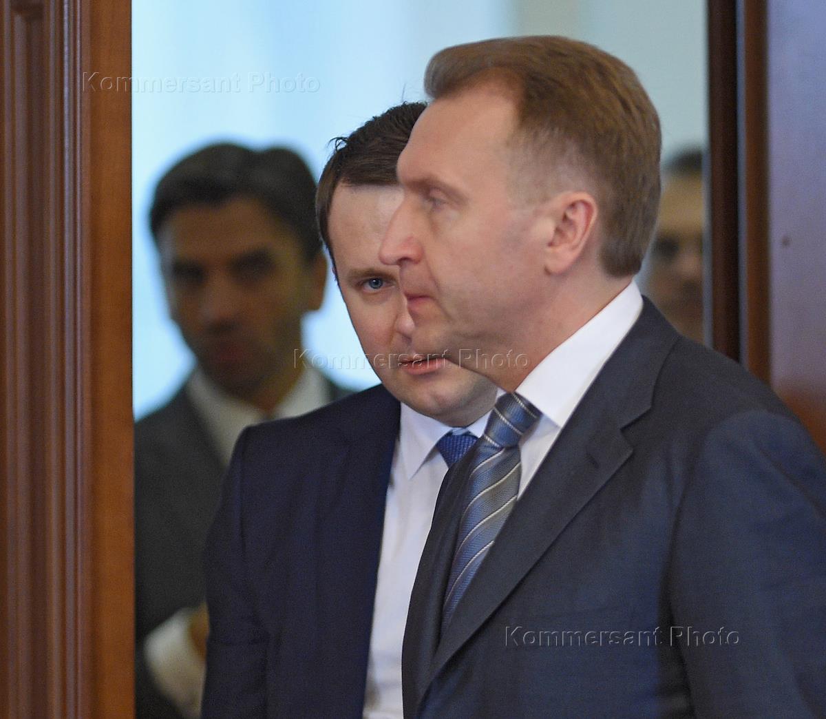 Заседание президиума совета при президенте по стратегическому развитию и приоритетным проектам. Министр экономического развития России Максим Орешкин (слева) и первый заместитель председателя правительства России Игорь Шувалов (справа) перед началом заседания.