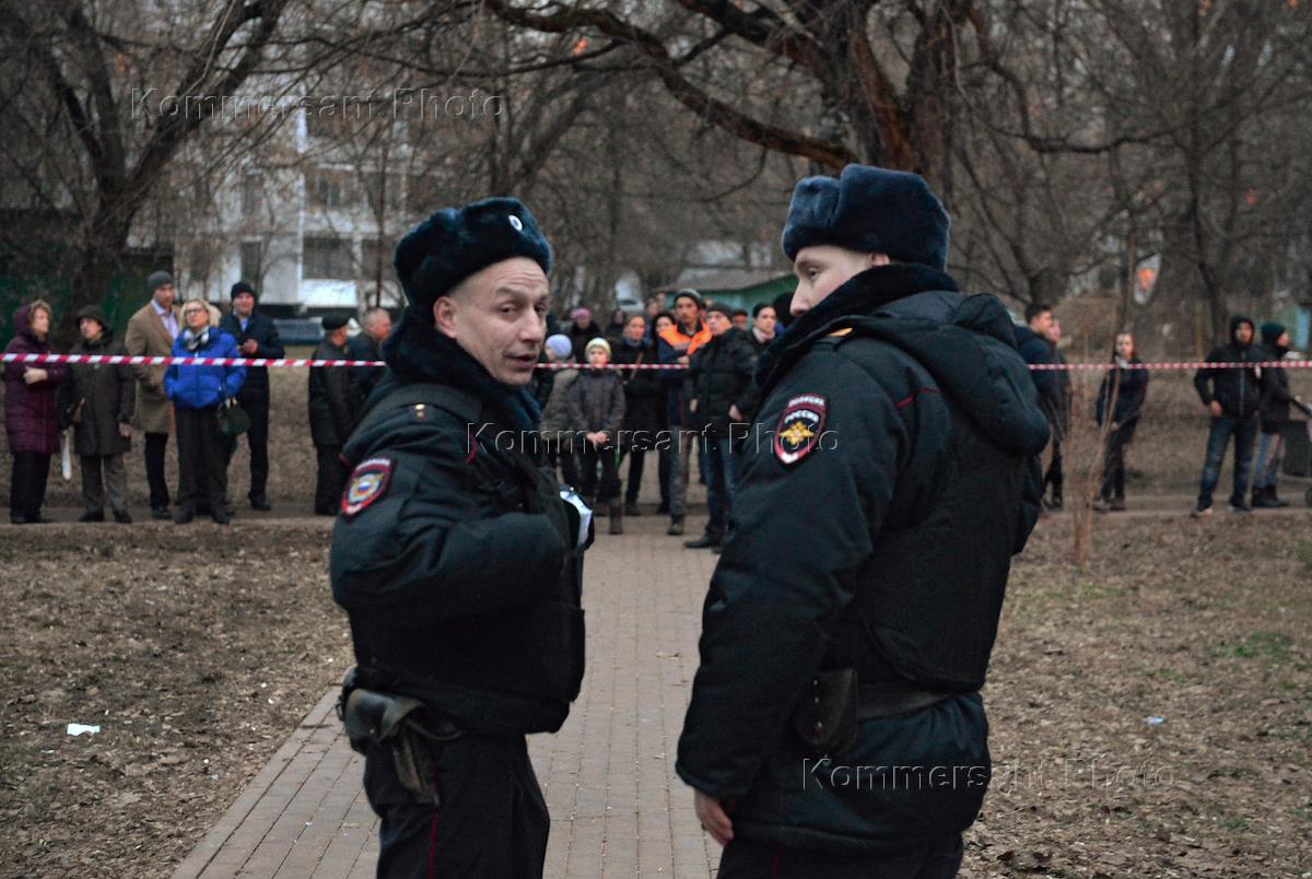 Сотрудники полиции России во время устранения последствий взрыва бытового газа и пожара в жилом доме на Северо-востоке Москвы на улице Изумрудной.