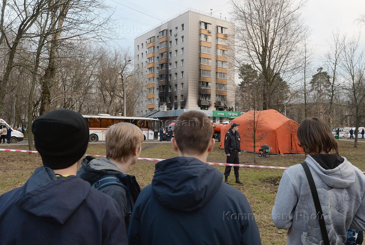 Последствия взрыва бытового газа и пожара в жилом доме на Северо-востоке Москвы на улице Изумрудной.