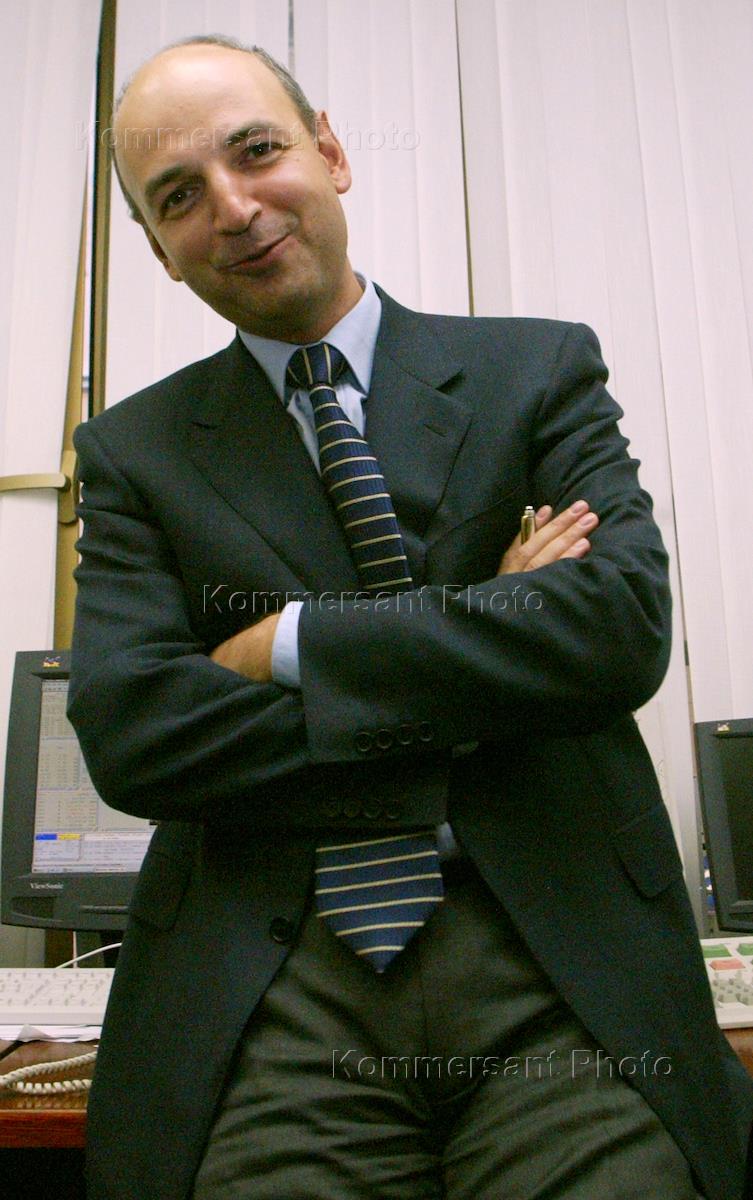 Deputy chairman of the Ingosstrakh-Soyuz Bank Atrem Korolev is interviewed in his office.