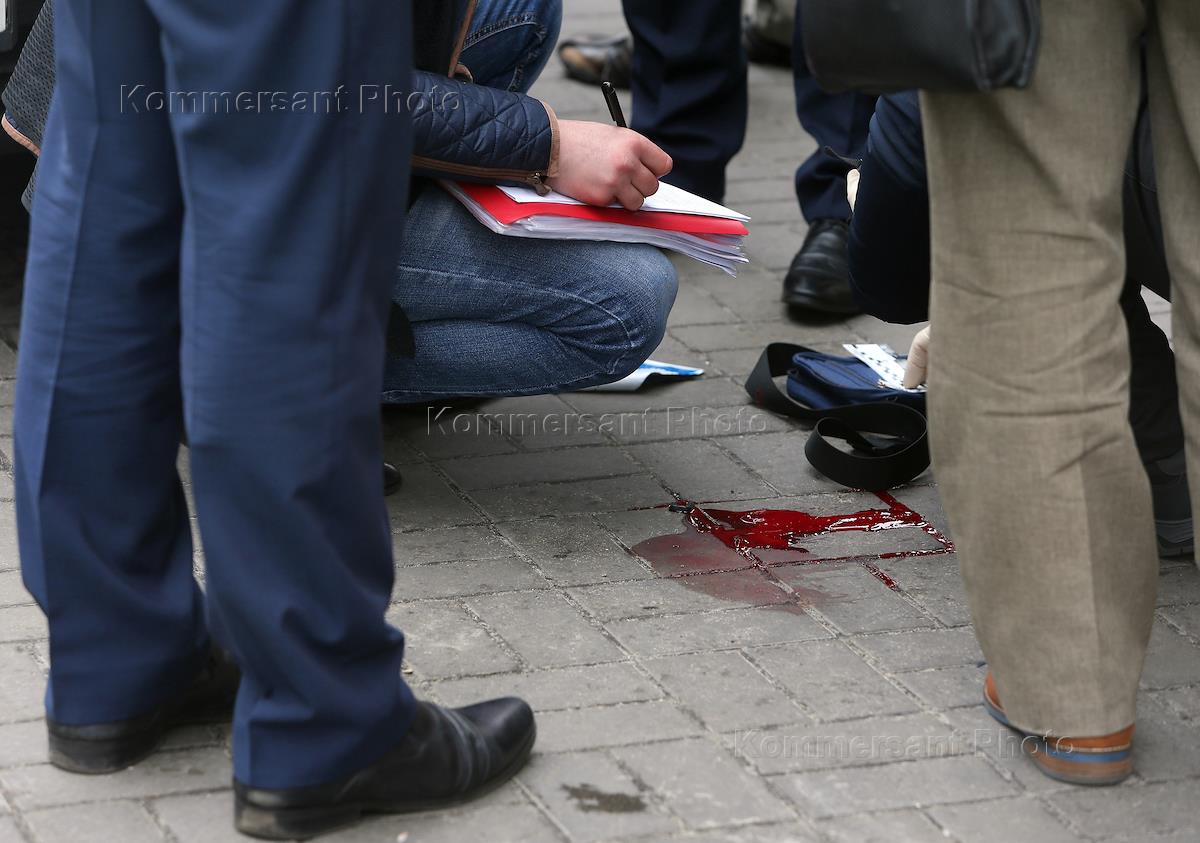 Место убийства бывшего депутата Государственной думы России Дениса Вороненкова около отеля Premier Palace Hotel в центре Киева. Работа следственной группы.