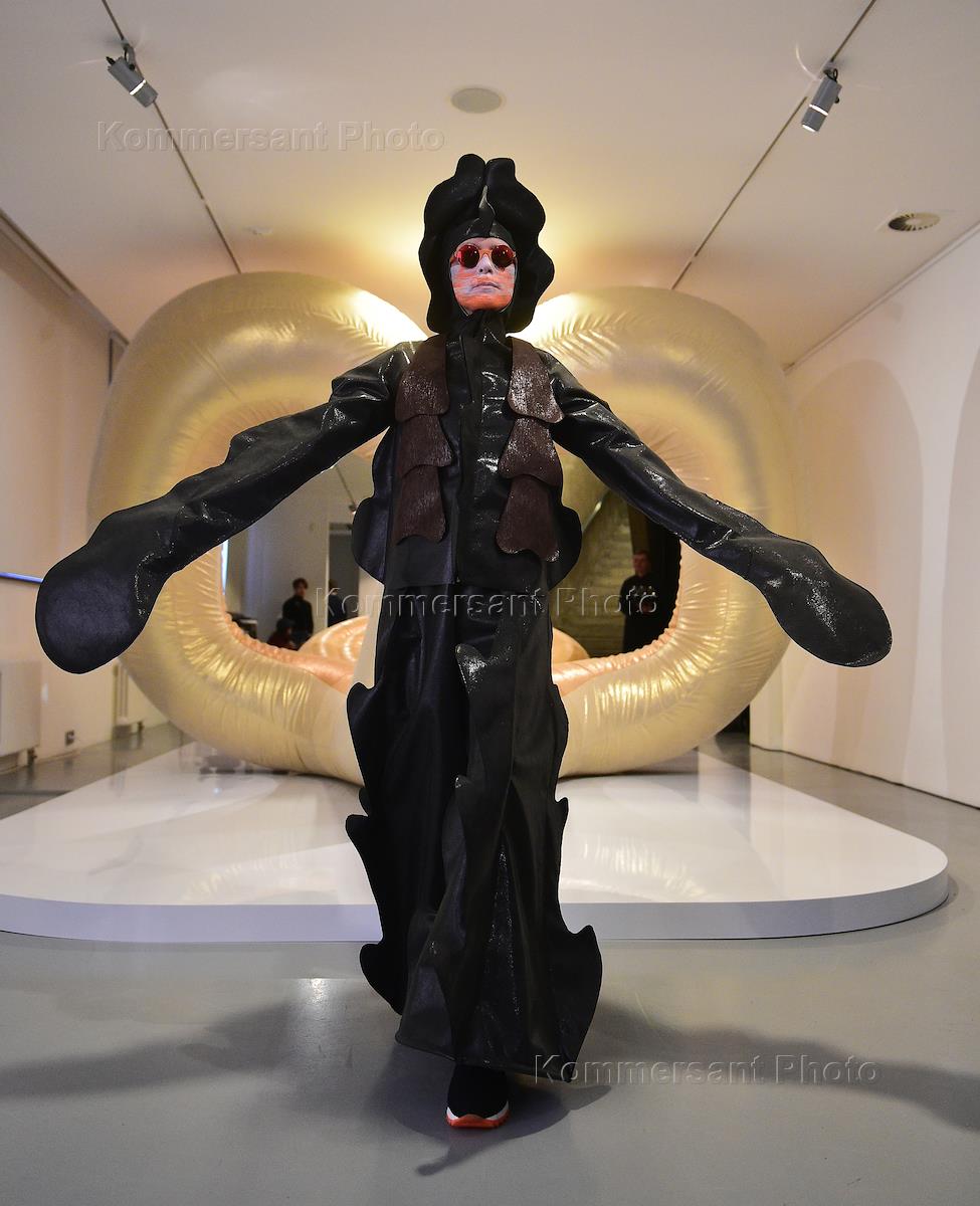 Церемония открытия однодневной экспозиции под названием "Ключ, построенный волной от замкнутого моря", совместного арт-проекта компании Alcantara, производителя запатентованного одноименного материала, и российского художника и экспериментатора Андрея Бартенева. Экспозиция представлена в галерее актуального искусства RuArts. Художник Андрей Бартенев во время церемонии.