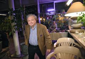 Коктейль с директором Музея современного искусства Токио, куратором основного проекта VII Московской биеннале современного искусства Юко Хасэгава в кафе "Март". Заведующий отделом новейших течений Государственного Русского музея Александр Боровский во время коктейля.