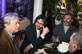 Коктейль с директором Музея современного искусства Токио, куратором основного проекта VII Московской биеннале современного искусства Юко Хасэгава в кафе "Март". Слева направо: заведующий отделом новейших течений Государственного Русского музея Александр Боровский, заведующий Отделом современного искусства Государственного Эрмитажа Дмитрий Озерков и дизайнер Игорь Гурович во время коктейля.