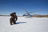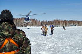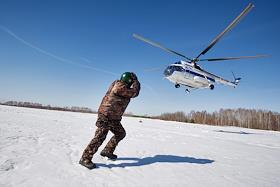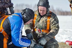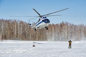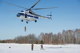 Воздушная тренировка основного состава парашютно-десантной пожарной службы Государственного автономного учреждения Новосибирской области "Новосибирская база авиационной охраны лесов". Отработка десантирования с вертолета МИ-8 (бортовой номер RA-24284) состоялась на аэродроме "Мочище".