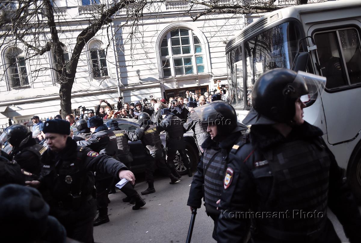 Несанкционированная акция против коррупции сторонников оппозиционера Алексея Навального прошла в центре Москвы. Сотрудники полиции во время задержания участников акции.