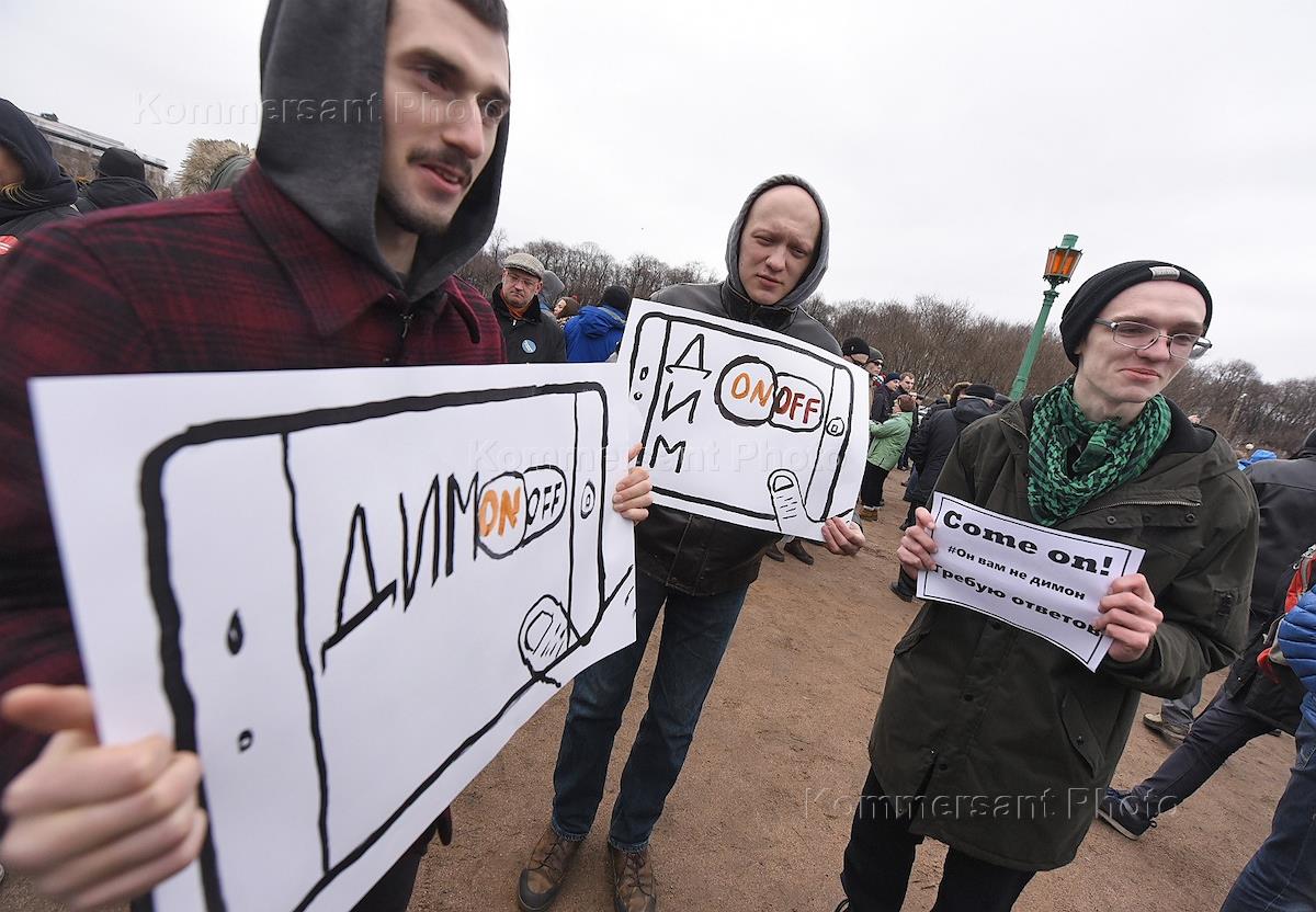 Несанкционированная акция против коррупции сторонников оппозиционера Алексея Навального - митинг Национально-освободительного движения (НОД) прошла на Марсовом поле.