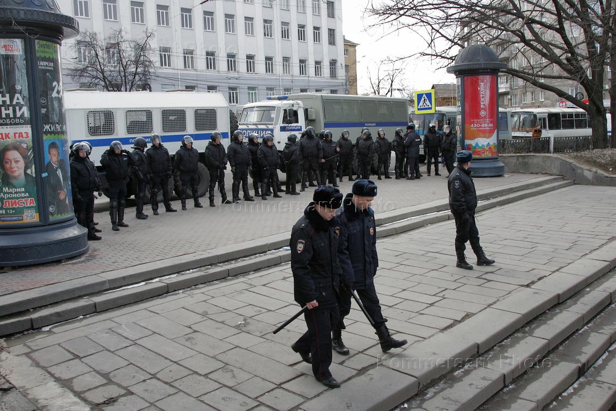Митинг против коррупции "Он вам не Димон" сторонников оппозиционера Алексея Навального. Сотрудники полиции в оцеплении во время митинга.