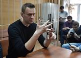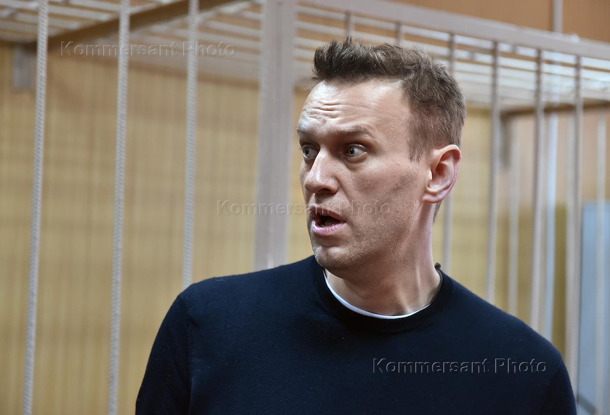 Оппозиционер Алексей Навальный, задержанный за организацию несанкционированной акции против коррупции, во время рассмотрения его административного дела в Тверском районном суде.