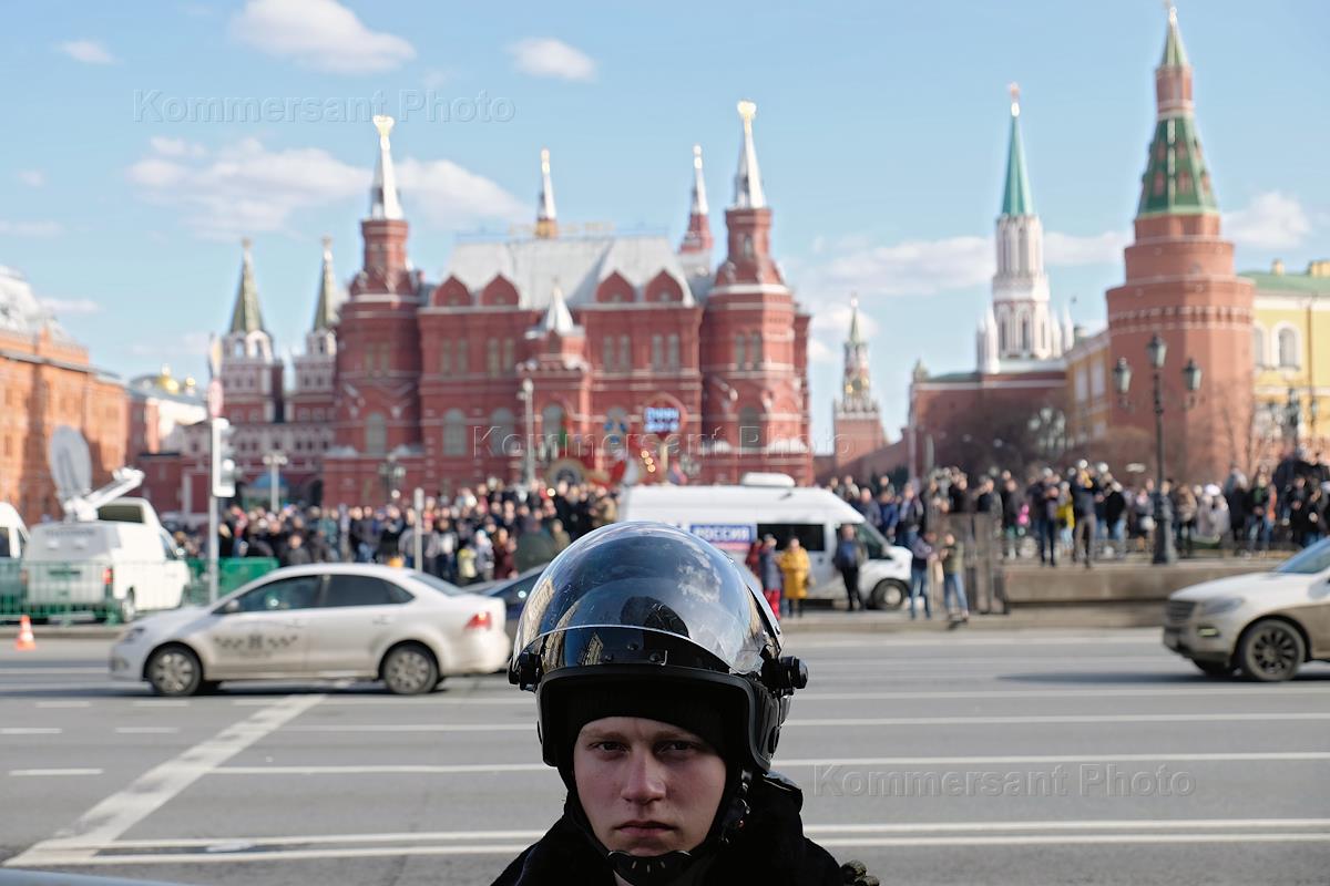 Несанкционированная акция против коррупции сторонников оппозиционера Алексея Навального прошла в центре Москвы. Сотрудники правоохранительных органов во время акции.