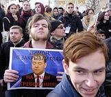 Несанкционированная акция против коррупции сторонников оппозиционера Алексея Навального прошла в центре Москвы. Участник с плакатом "Димон, не закрывай глаза на наши требования!" во время акции.