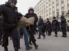 Несанкционированная акция против коррупции сторонников оппозиционера Алексея Навального прошла в центре Москвы. Сотрудники правоохранительных органов во время задержания участника акции.