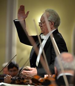 Церемония открытия VIII Международного фестиваля музыканта Мстислава Ростроповича прошла в Большом зале Московской государственной консерватории имени П.И. Чайковского. Художественный руководитель и главный дирижер Академического симфонического оркестра Санкт-Петербургской государственной филармонии Юрий Темирканов во время церемонии.