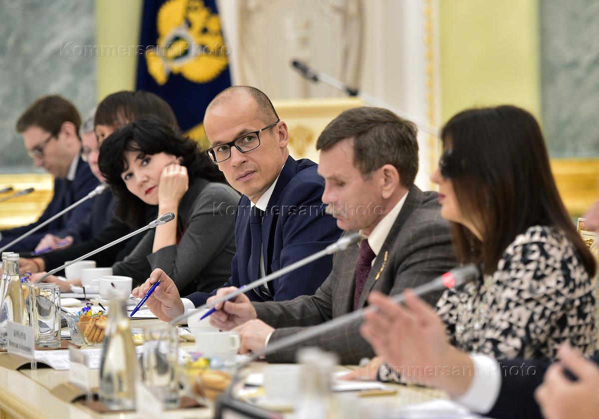 Ежегодная встреча генерального прокурора России Юрия Чайки с членами Общественной палаты России прошла в здании Генеральной прокуратуры России. Первый заместитель генерального прокурора России Александр Буксман (В центре) во время встречи.