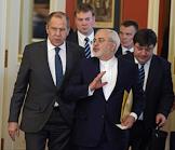 Церемония подписания документов по итогам российско-иранских переговоров в Кремле. Министр иностранных дел России Сергей Лавров (слева) и министр иностранных дел Ирана Мохаммад Джавад Зариф (в центре) перед началом во время церемонии.