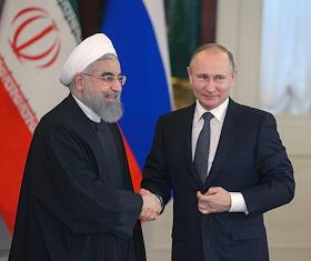 Президент России Владимир Путин (слева) и президент Ирана Хасан Рухани (справа) во время встречи в Кремле.