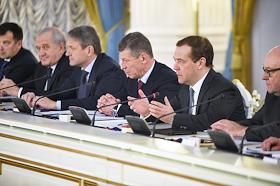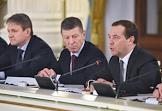 Встреча председателя правительства России Дмитрия Медведева с главой правительства Узбекистана Абдуллой Ариповым в Доме приемов правительства России. Слева направо: министр сельского хозяйства России Александр Ткачев, заместитель председателя правительства России Дмитрий Козак и председатель правительства России Дмитрий Медведев во время встречи.