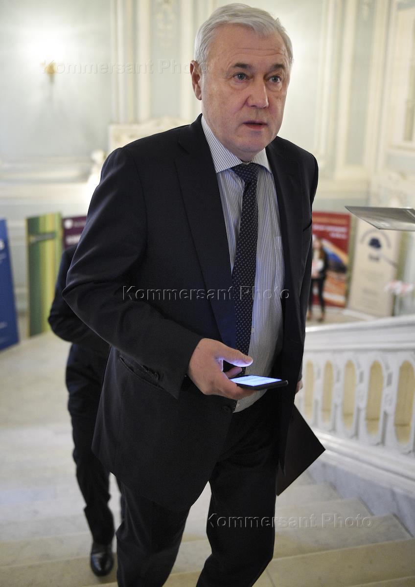 XXVIII съезд Ассоциации российских банков прошел в Колонном зале Дома Союзов. Председатель комитета Государственной думы России по финансовому рынку Анатолий Аксаков перед началом работы съезда.