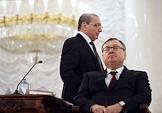 XXVIII съезд Ассоциации российских банков прошел в Колонном зале Дома Союзов. Председатель правления ОАО АКБ "Росбанк" Дмитрий Олюнин (слева) и президент торгово-промышленной палаты (ТПП) России Сергей Катырин (справа) во время съезда.