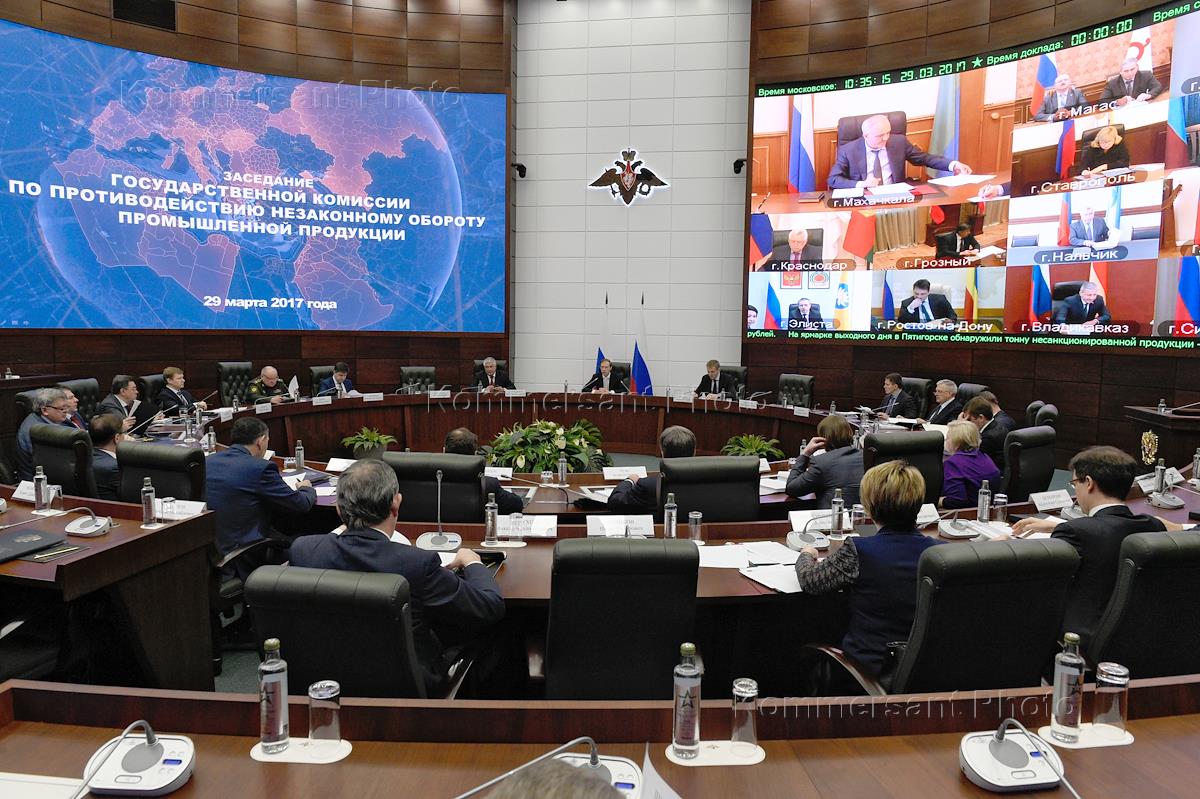 Заседание Государственной комиссии по противодействию незаконному обороту промышленной продукции под председательством министра промышленности и торговли России Дениса Мантурова прошло в Национальном центре управления обороной России.