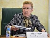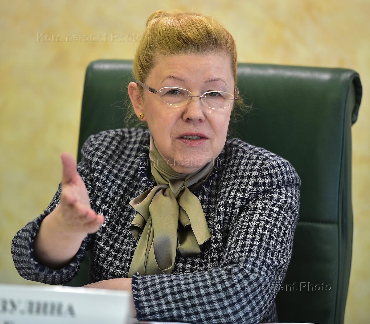 Парламентские слушания на тему "Концепция родительско-детских отношений в Семейном кодексе РФ" в Совете федерации России. Представитель от исполнительной власти Омской области Елена Мизулина во время выступления на слушаниях.