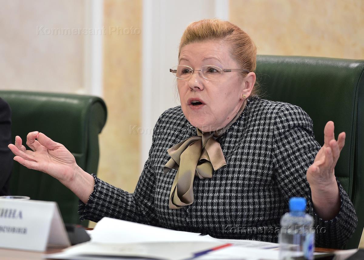 Парламентские слушания на тему "Концепция родительско-детских отношений в Семейном кодексе РФ" в Совете федерации России. Представитель от исполнительной власти Омской области Елена Мизулина во время выступления на слушаниях.