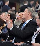 IV Международный Арктический форум "Арктика – территория диалога". Член комитета ГД по международным делам Артур Чилингаров (слева) и заместитель председателя Правительства России Дмитрий Рогозин во время форума.