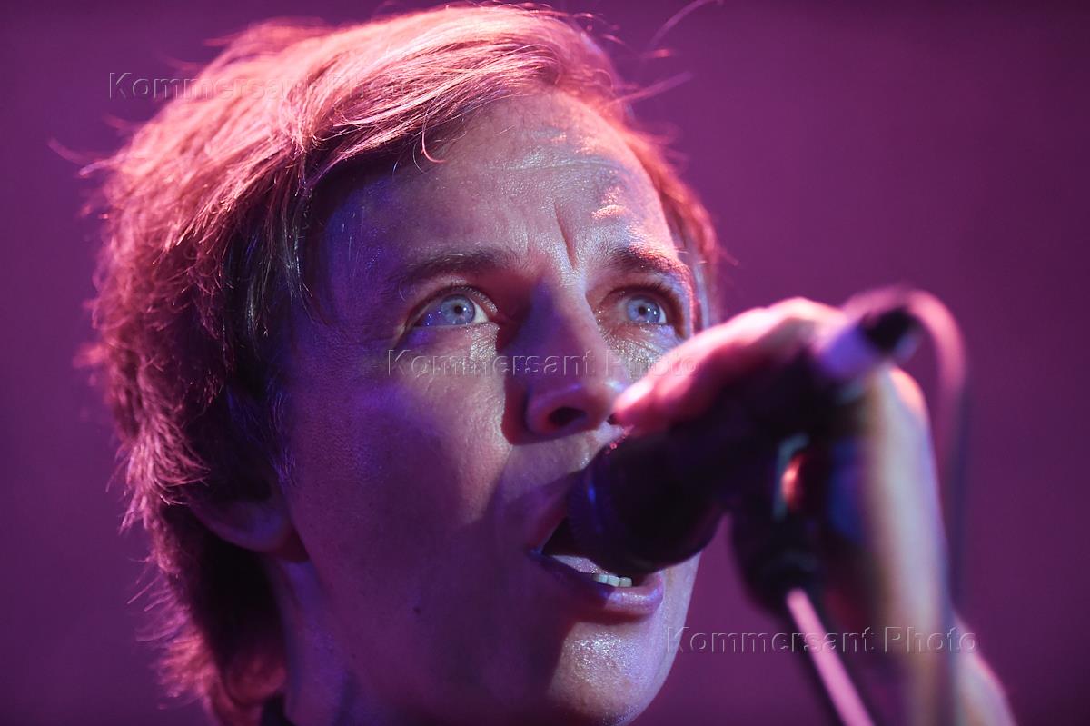 Лидер группы "Мумий Тролль" Илья Лагутенко во время выступления на сольном концерте на сцене концертного зала Crocus City Hall.