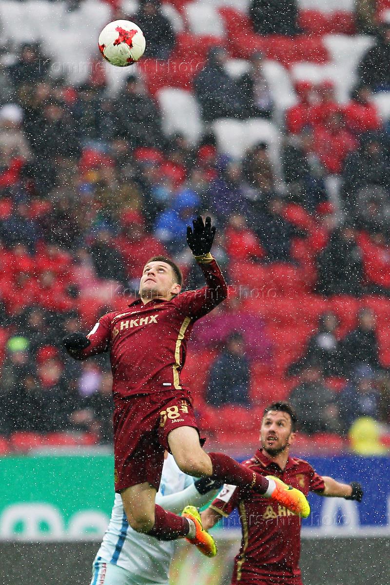 РОСГОССТРАХ Чемпионат России по футболу 2016/2017, 21-й тур. Матч между командами "Рубин" (Казань) - "Зенит" (Санкт-Петербург) на стадионе "Казань Арена". Игрок команды "Рубин" Руслан Камболов (в церте) во время матча.