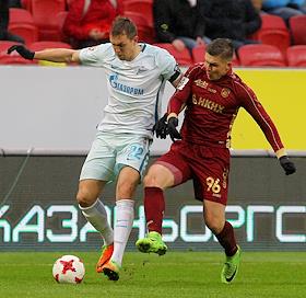 РОСГОССТРАХ Чемпионат России по футболу 2016/2017, 21-й тур. Матч между командами "Рубин" (Казань) - "Зенит" (Санкт-Петербург) на стадионе "Казань Арена". Игрок команды "Зенит" Артем Дзюба (справа) во время матча.