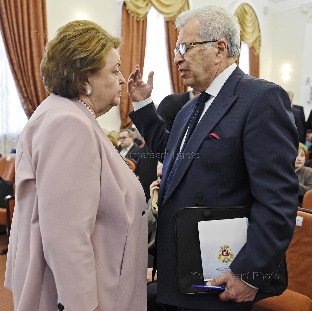 Расширенное заседание коллегии Министерства образования и науки России. Представитель в Совете Федерации России от законодательного (представительного) органа государственной власти города Москвы Зинаида Драгункина (слева) и директор Центра образования №109 Евгений Ямбург во время заседания.