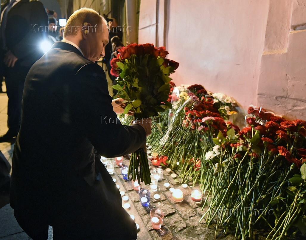 Взрыв в метро Санкт-Петербурга. Взрыв произошел в поезде следовавшем от станции "Сенная" на станцию "Технологический институт". Президент России Владимир Путин во время возложения цветов к месту трагедии.