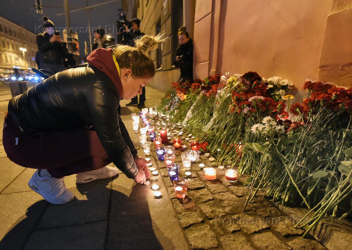 Взрыв в метро Санкт-Петербурга. Взрыв произошел в поезде следовавшем от станции "Сенная" на станцию "Технологический институт". Горожане во время возложения цветов к месту трагедии.