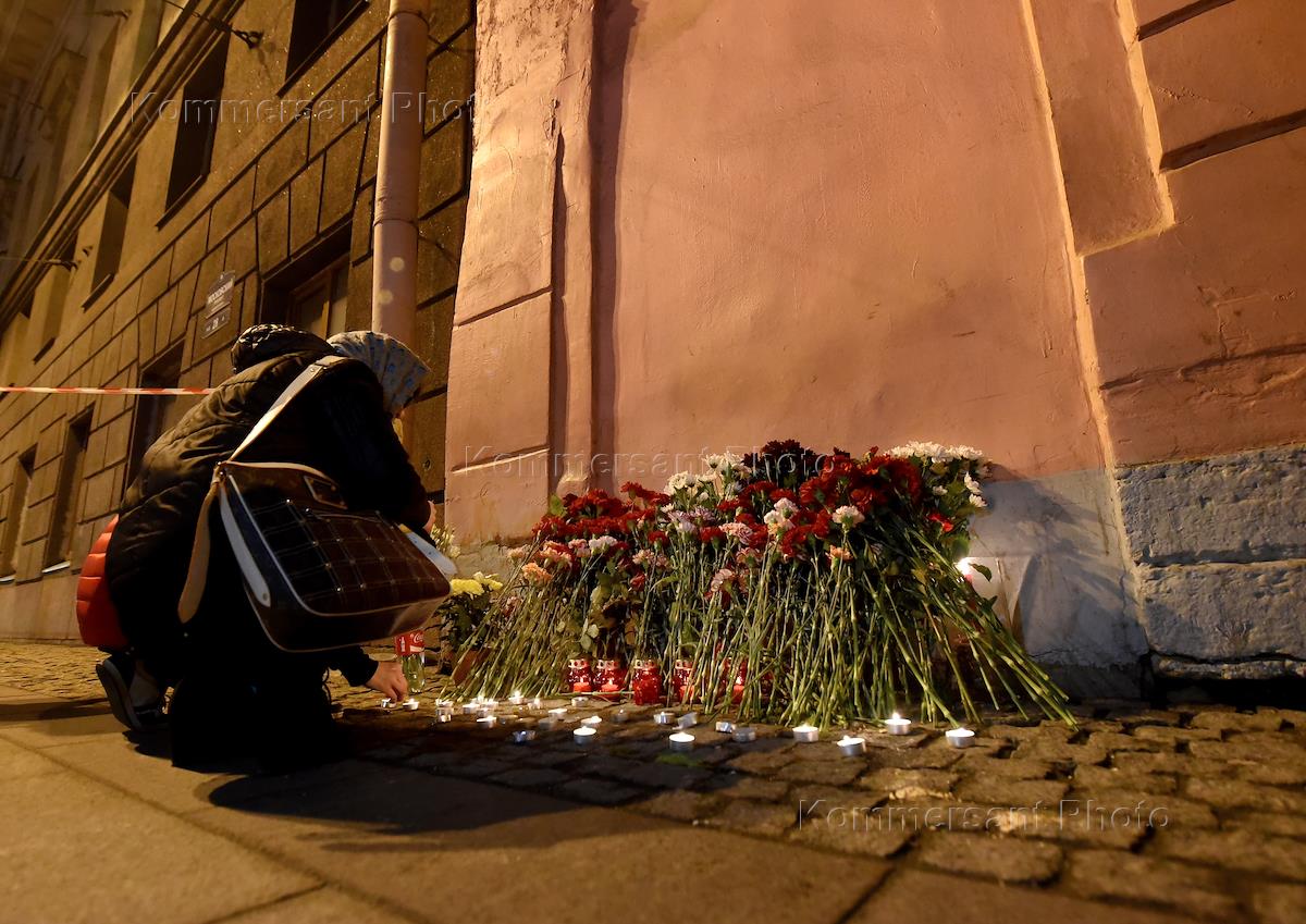 Взрыв в метро Санкт-Петербурга. Взрыв произошел в поезде следовавшем от станции "Сенная" на станцию "Технологический институт". Горожане во время возложения цветов к месту трагедии.