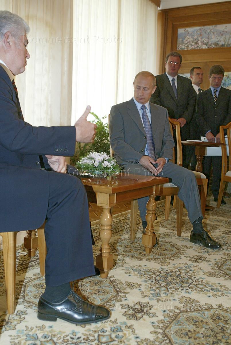 Russian President Vladimir Putin talks to the Azerbaijani Prime Minister Ilkham Aliyev, son of the country's President Geydar Aliyev. The two statesmen met in Yalta during the CIS leaders summit.