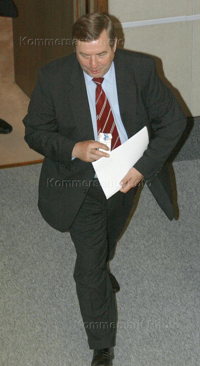 Speaker of the State Duma (lower house of parliament) Gennady Seleznev arrives at a session of the legislature.