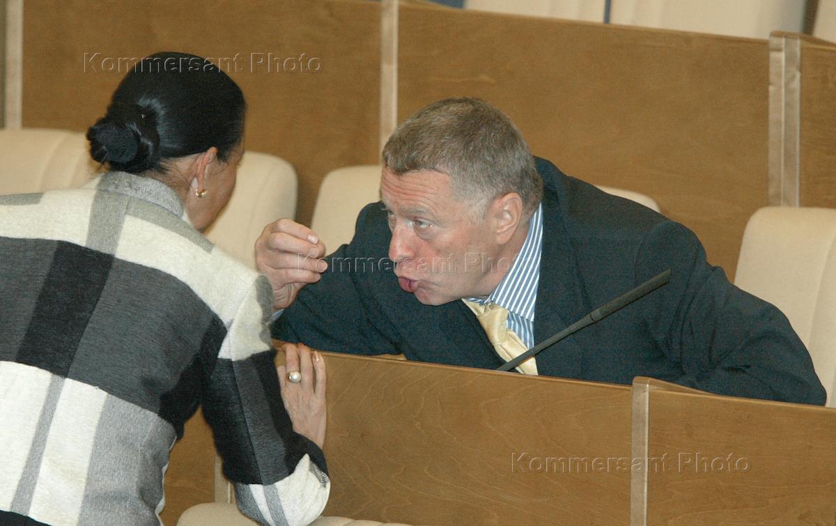 Лидер Либерально-демократической партии России (ЛДПР), заместитель председателя Государственной Думы Владимир Жириновский (справа) на очередном думском заседании.