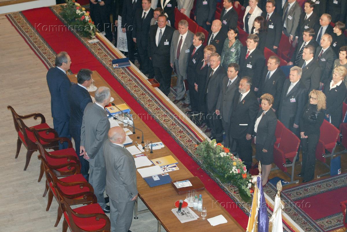 Moscow Mayor Yury Luzhkov (centre) took part in the III All-Russia "Edinstvo and Otechestvo" - "United Russia" party meeting that was held in the State Kremlin Palace.