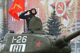 Праздничные мероприятия, посвященные 70-й годовщине Победы в Великой Отечественной войне 1941–1945 годов, прошли в Екатеринбурге. Войска Екатеринбургского гарнизона во время Парада Победы на площади 1905 года. Танк Т-34-85.