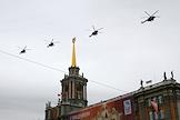 Праздничные мероприятия, посвященные 70-й годовщине Победы в Великой Отечественной войне 1941–1945 годов, прошли в Екатеринбурге. Войска Екатеринбургского гарнизона во время Парада Победы на площади 1905 года. Вертолеты Ми-8.