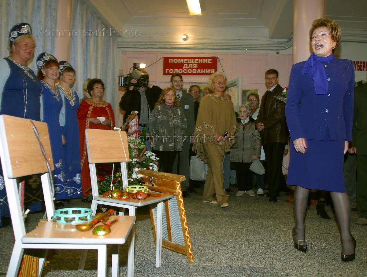 St.Petersburg governor candidate Valentina Matviyenko gets her ballot-ticket at a polling station.