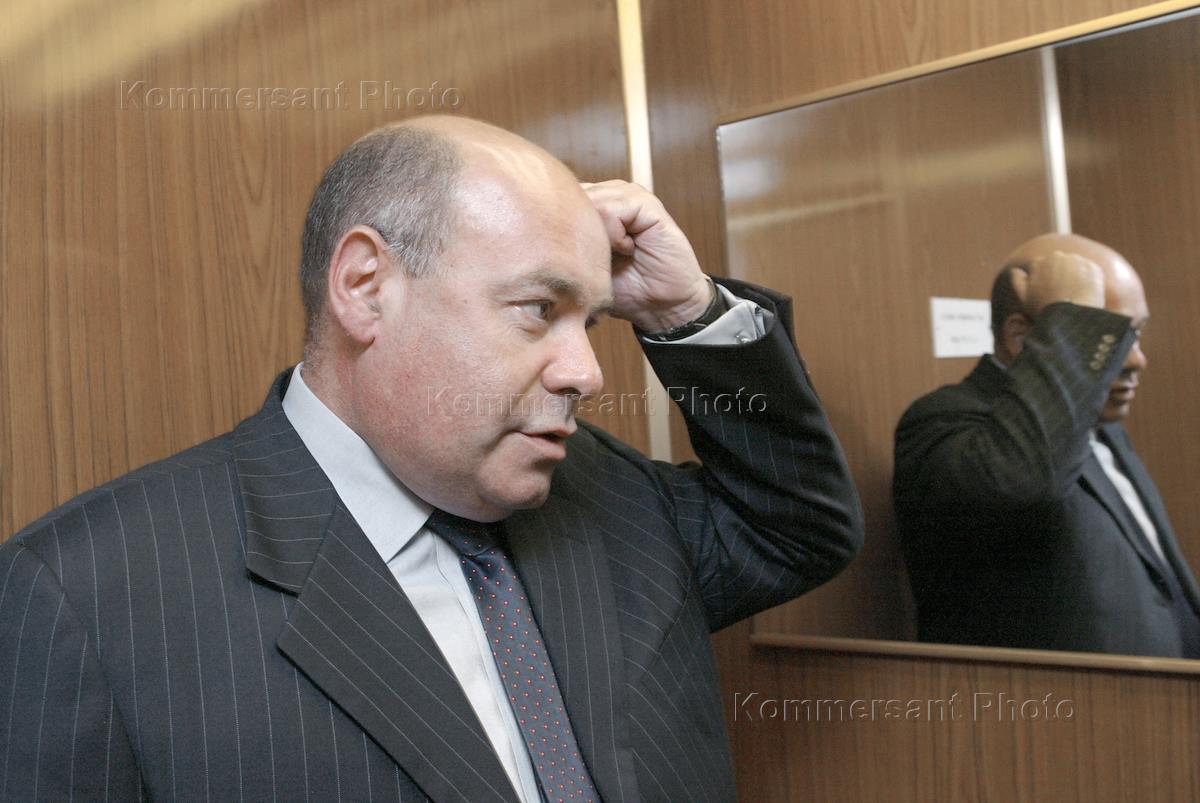 Russian Culture Minister Mikhail Shvydkoi attends the press-conference devoted to the 175th Lev Tolstoi anniversary. The press-conference was held in the ITAR-TASS office. The minister is in the elevator.