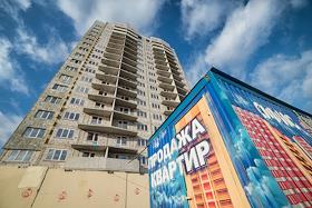 Жанровая фотография. Новый жилой дом. Надпись "Продажа квартир".