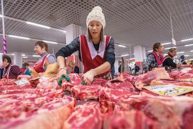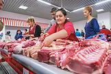 Жанровая фотография. Витрина с мясной вырезкой из говядины на рынке "Воронежский".